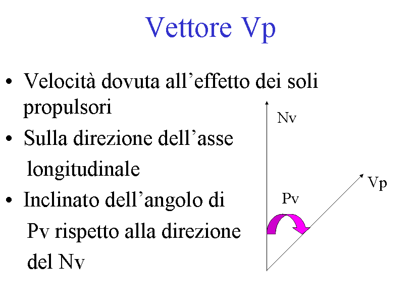 Una nave per effetto dell'azione dei soli propulsori si muove lungo la direzione dell'asse longitudinale secondo la velocità di propulsione Vp