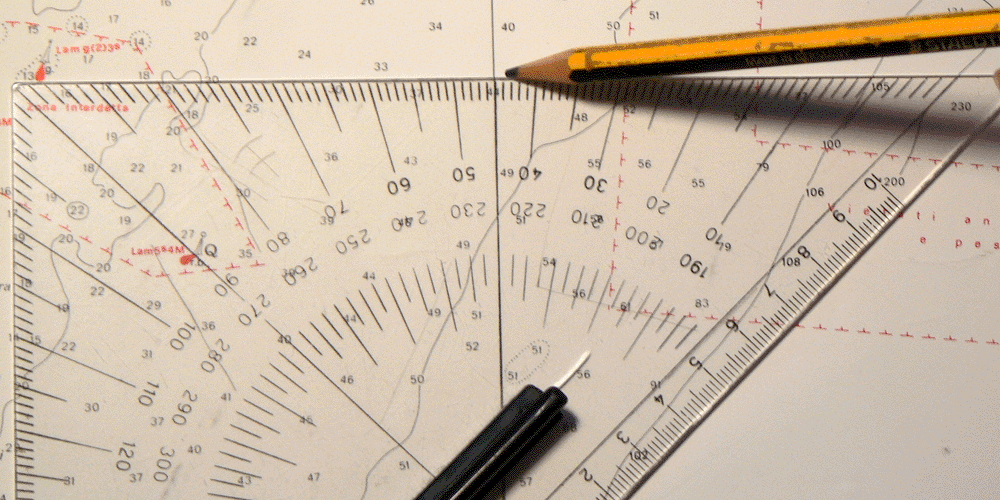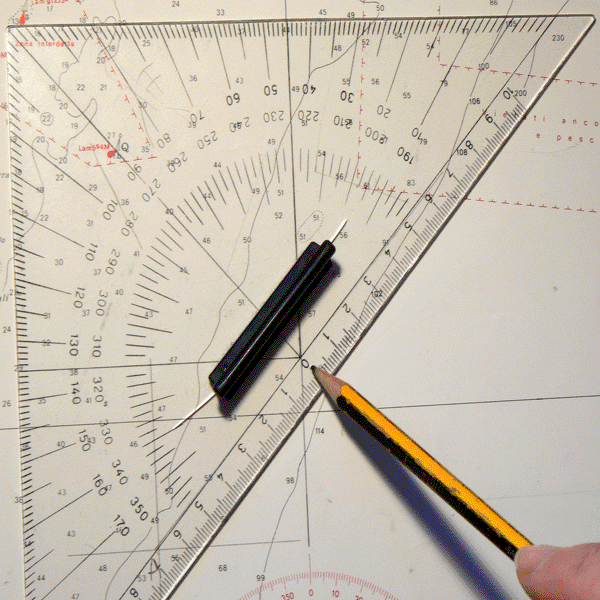 L'uso della squadretta nautica รจ fondamentale per misurare gli angoli e per tracciare le direzioni noto il valore dell'angolo con la direzione del Nord Geografico (Pv, Azc, Rilv).